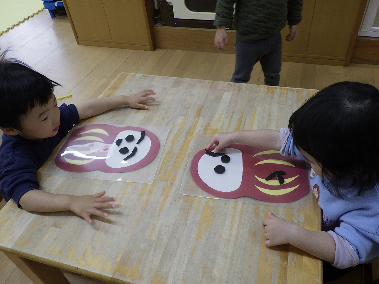 「ダルマさんのお顔にするんだよ」