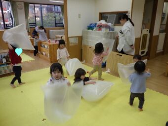 30リットルのポリ袋を使用した遊びです。