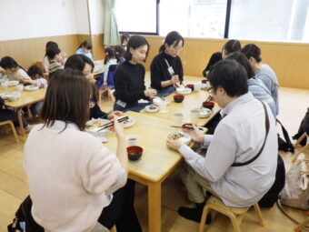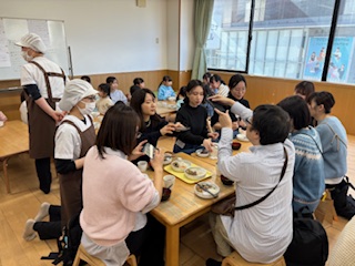 一緒に給食を食べ、9時半から始まった「お茶会・試食会」は
