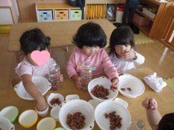 どんぐりを見つける度に、ビリッ!とバックの蓋を開け、