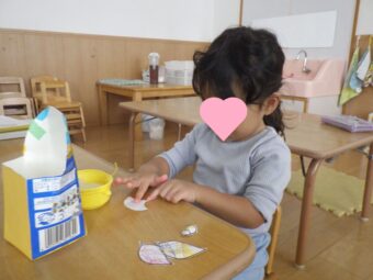 よれないように気をつけながら、少しずつ丁寧に貼り付ける姿が見られました。