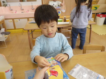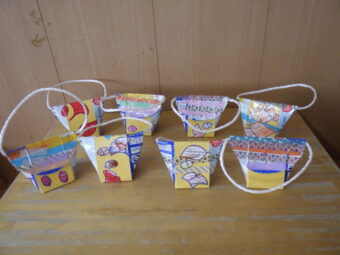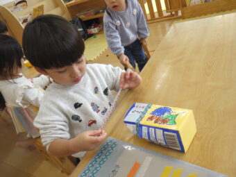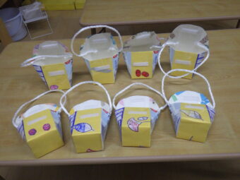 ご家庭からいただいた廃材の牛乳パックを使用し、