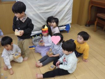 今年度は、以上児クラスと一緒に豆まきを行います。