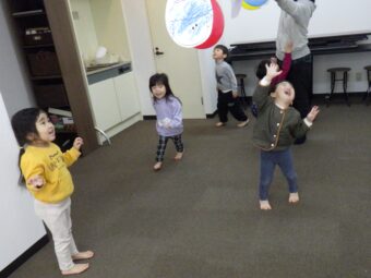 アトリエで鬼に見立てた風船をやっつける遊びをしました。