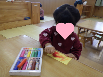 クレヨンや筆を3本持ちで持つ姿が増えてきました。