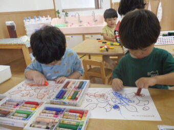 好きな色のクレヨンを選び、