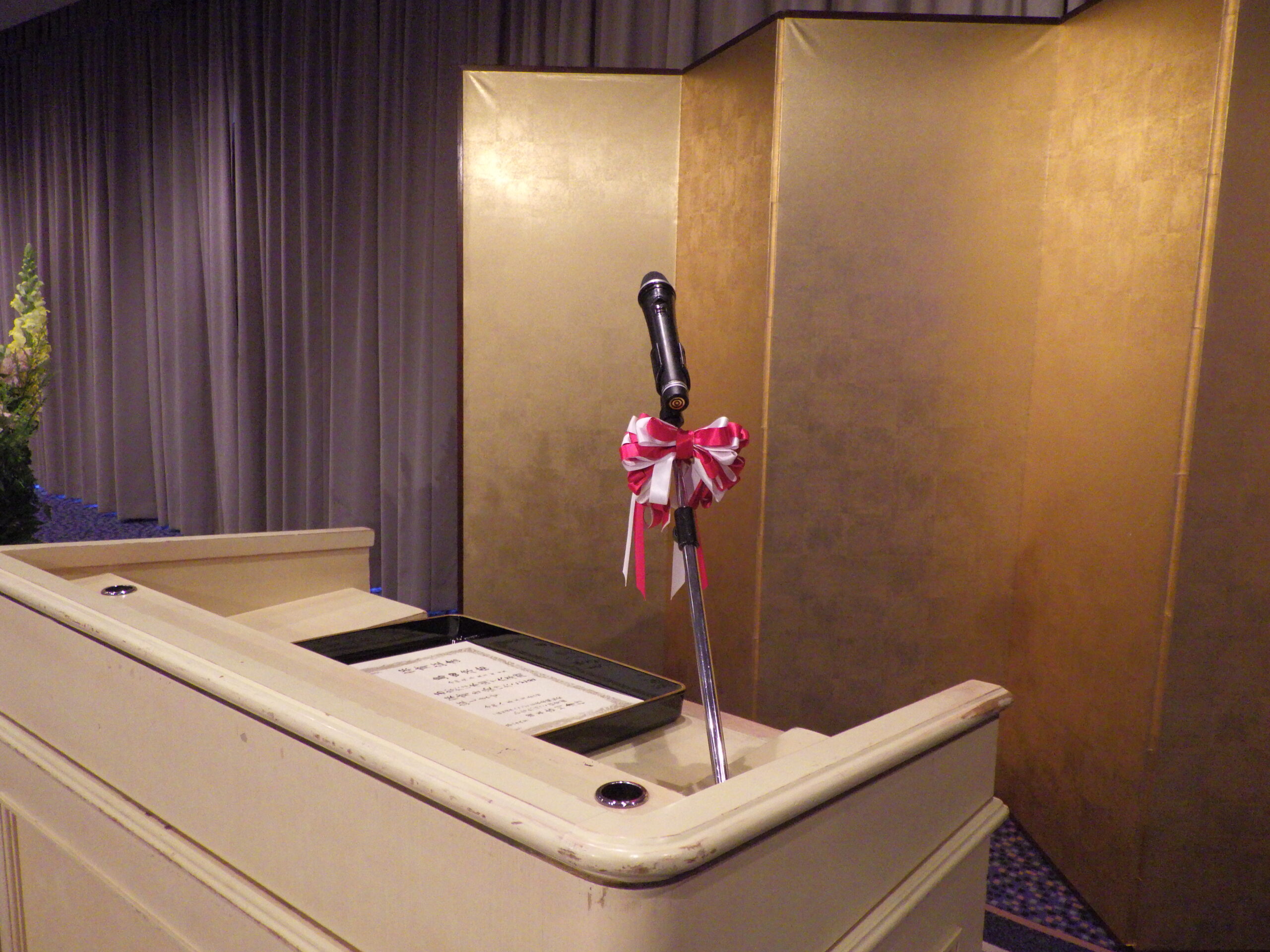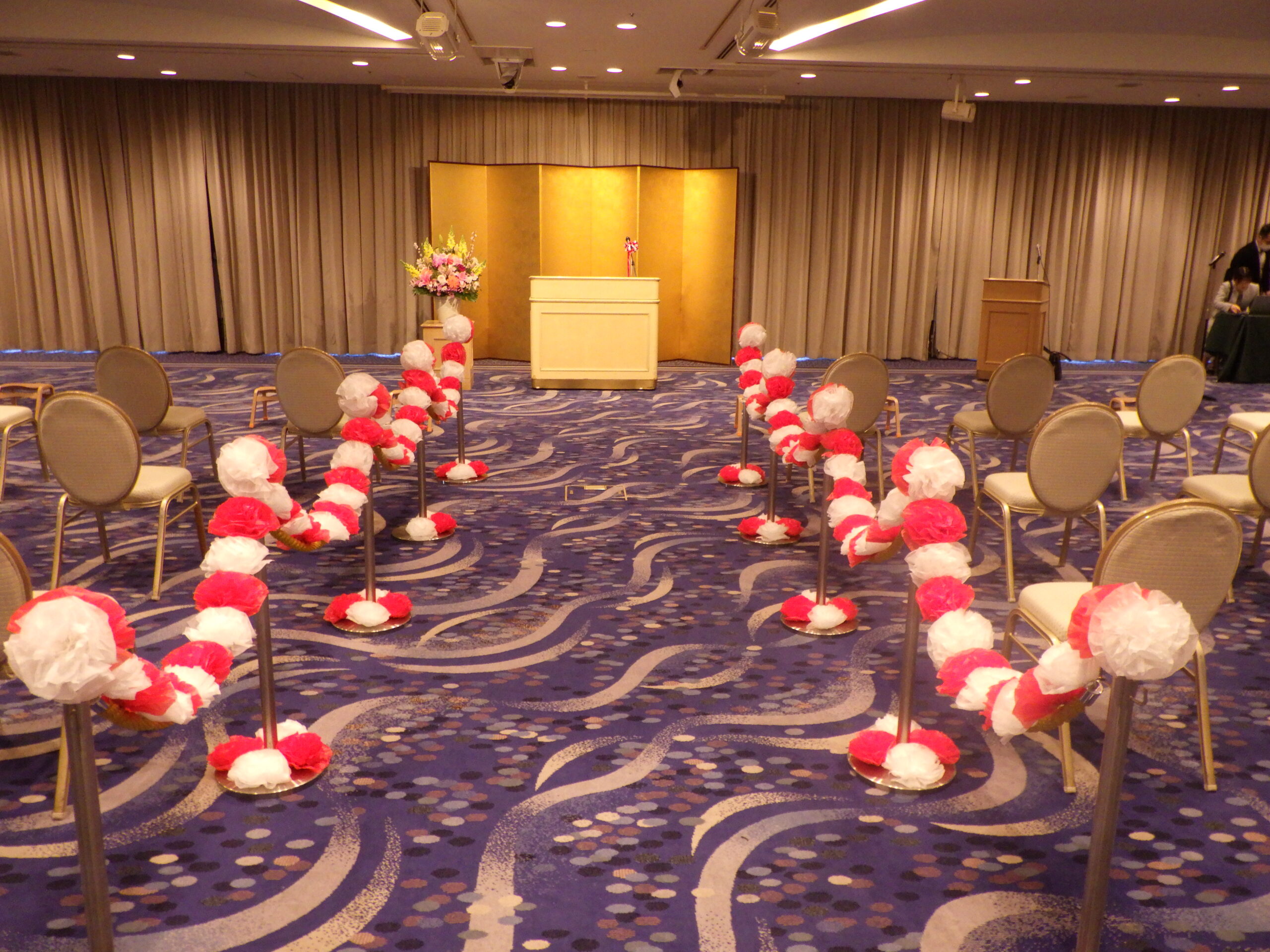 会場に飾るお祝いのお花。
