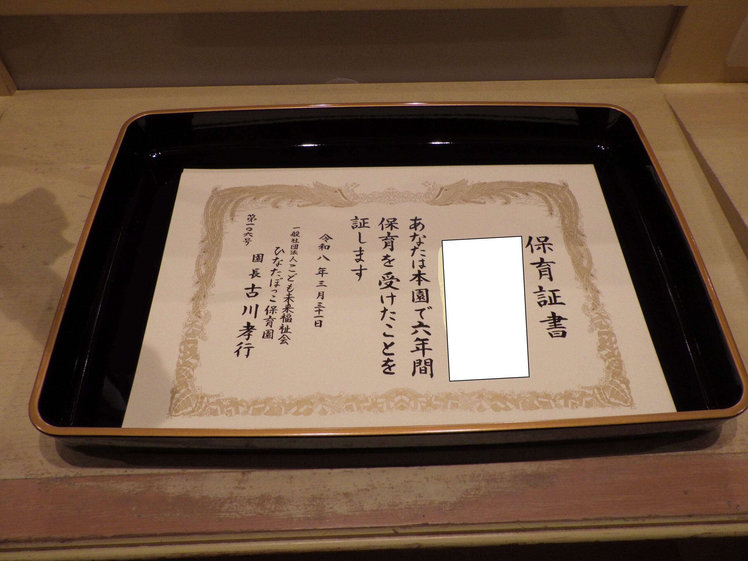 「卒園おめでとう会」で胸を張って卒園証書を受け取る姿は、