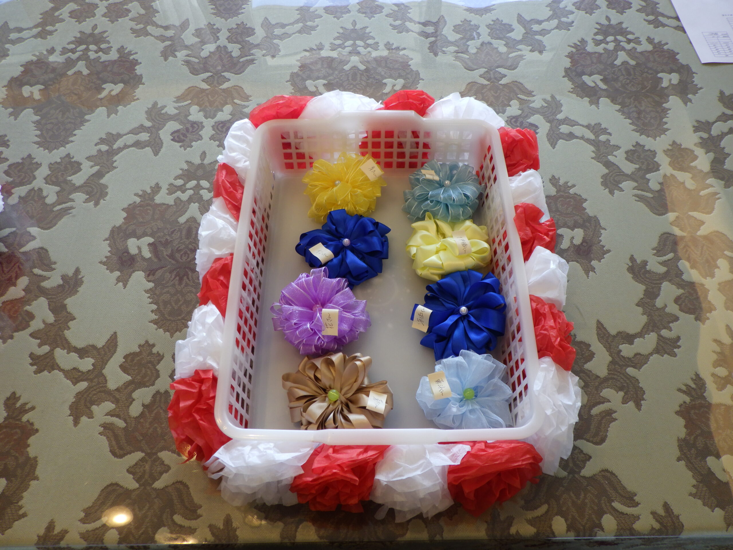 思い思いに色のリボンを手に取り、