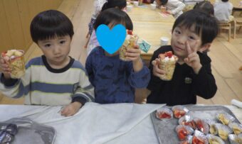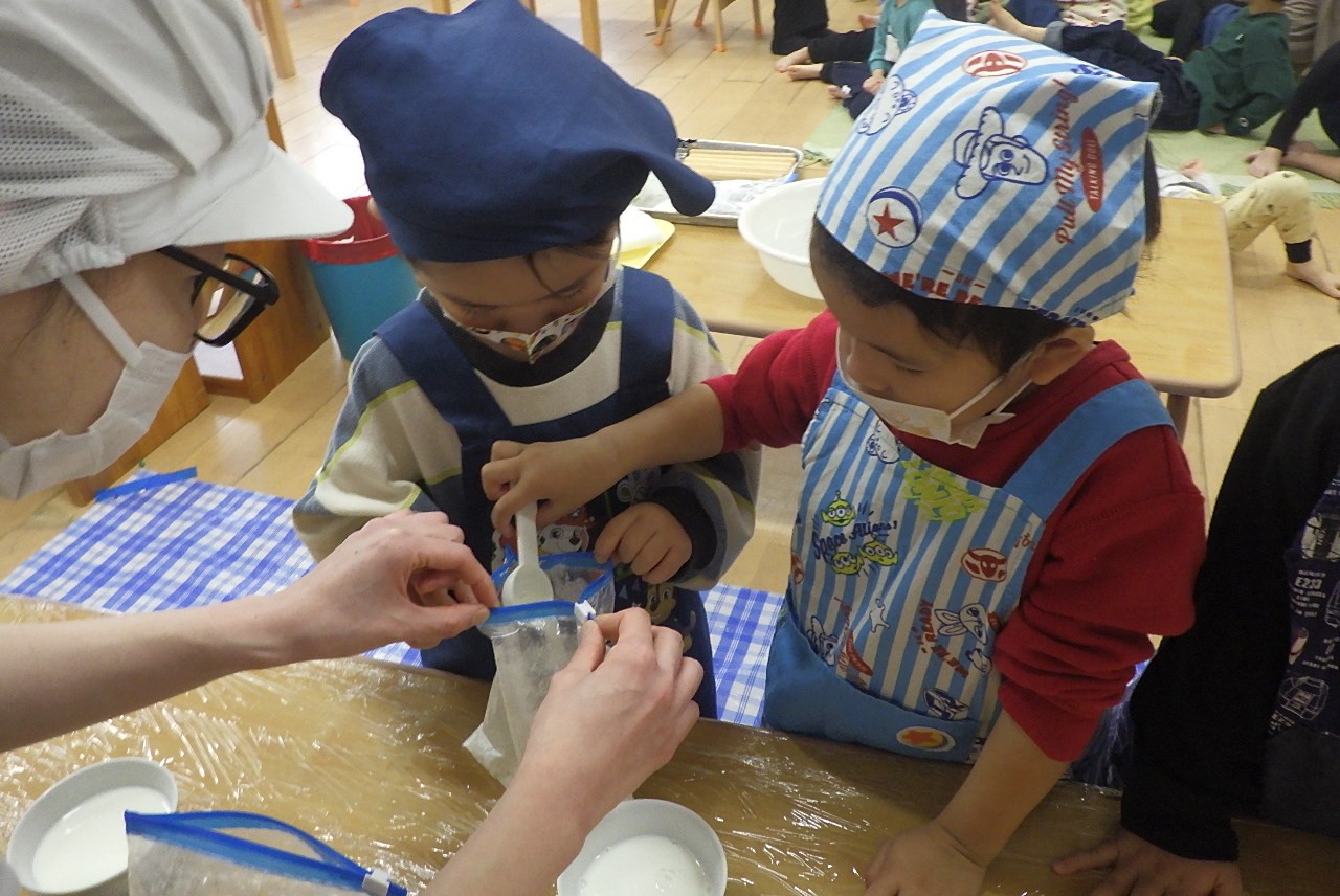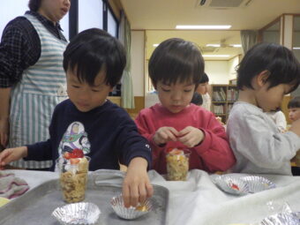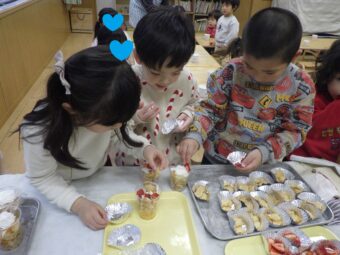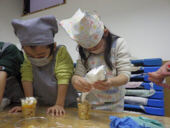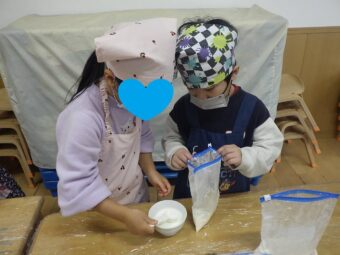 午前中は、にじ組がパフェに乗せるクッキー作りです。