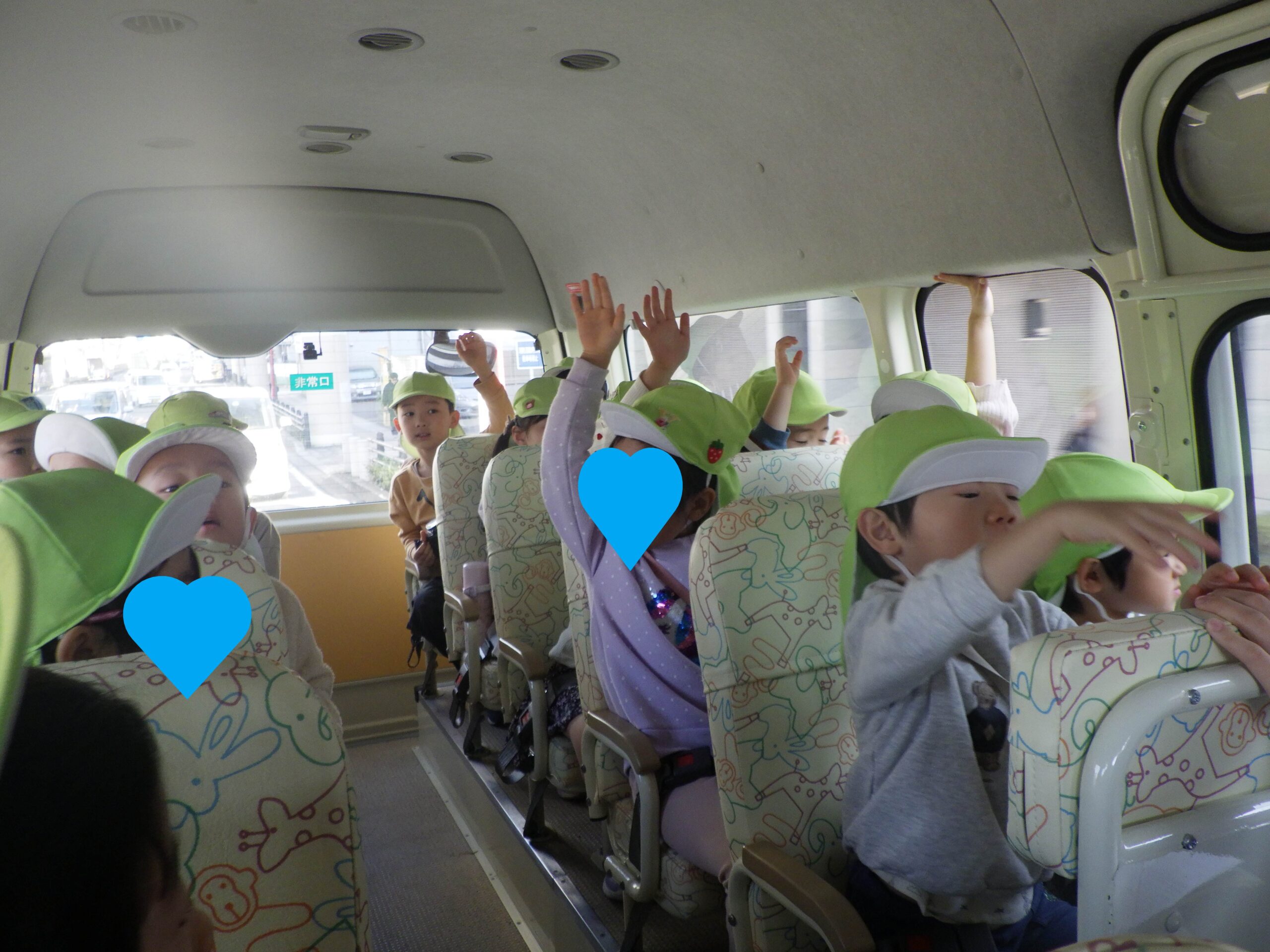 保育園バスの中で、