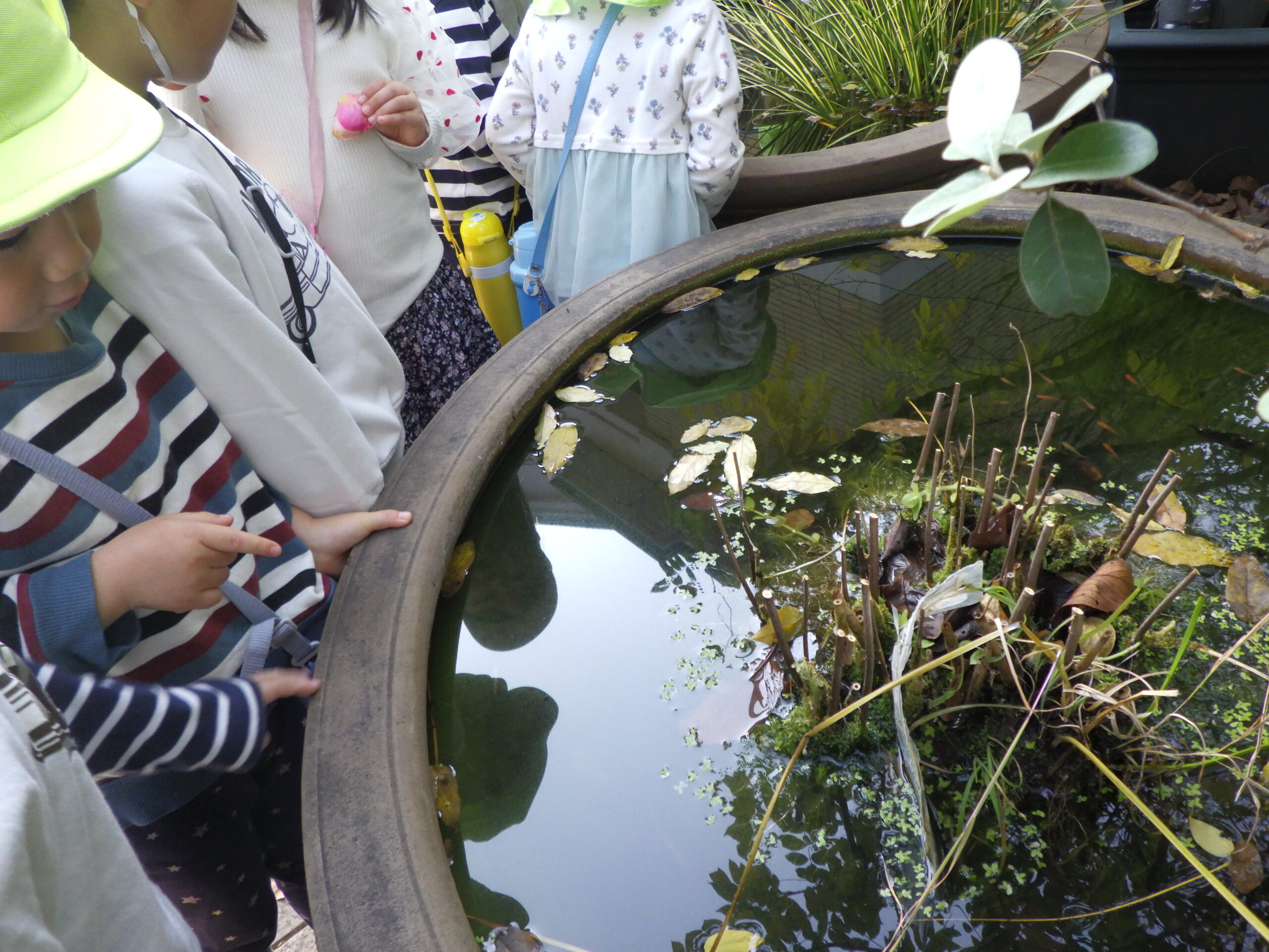 「メダカは何を食べるのかな」と興味を示し、観察していました。