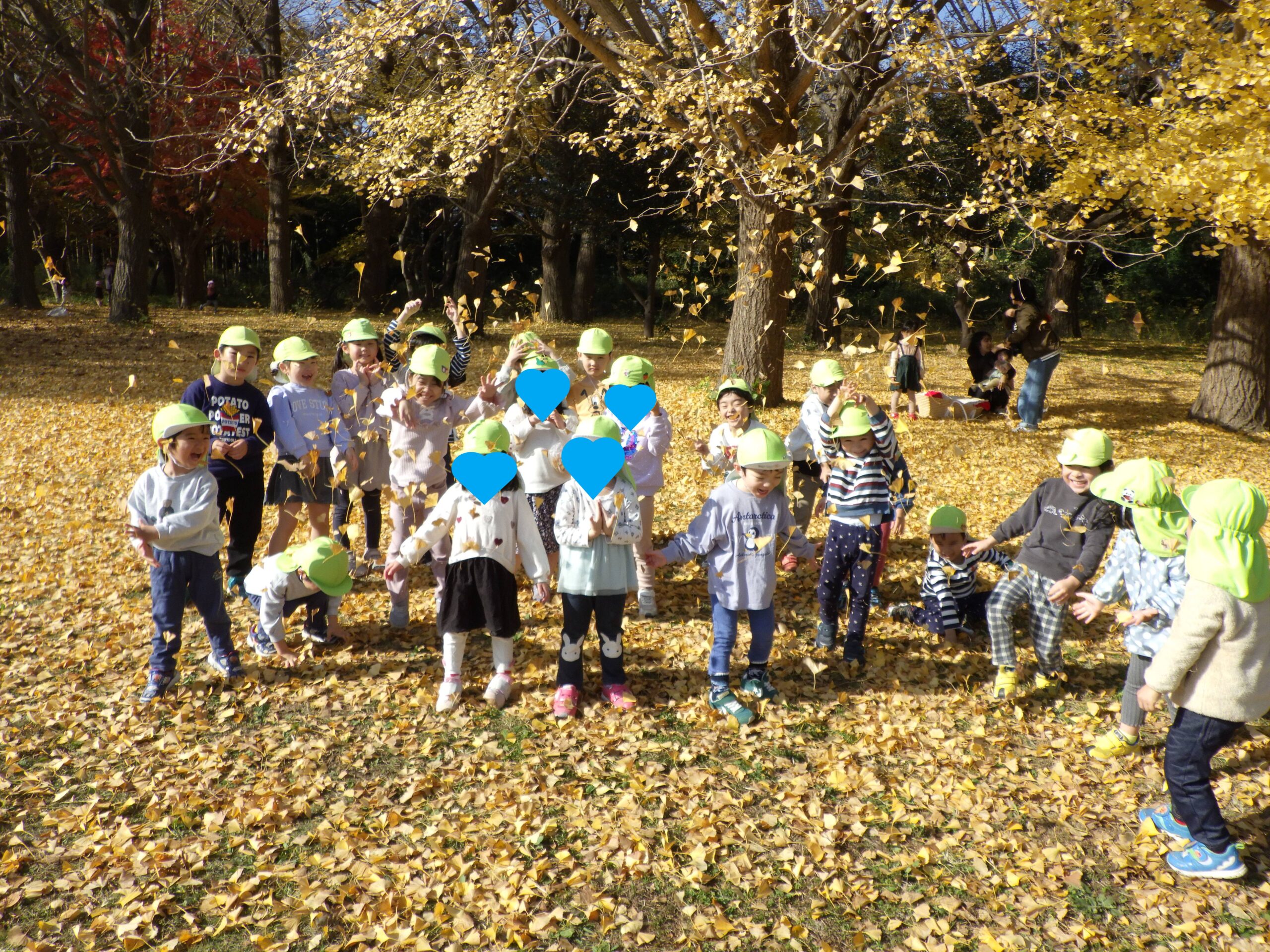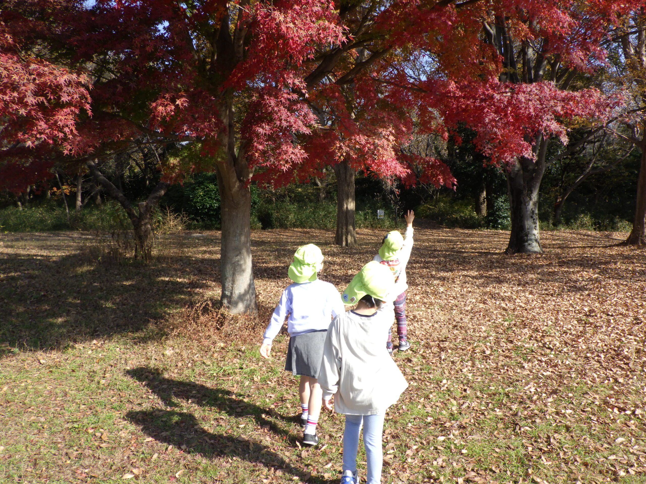 「もみじに手が届くかな?」と手を伸ばしたり、ジャンプしてみたり。