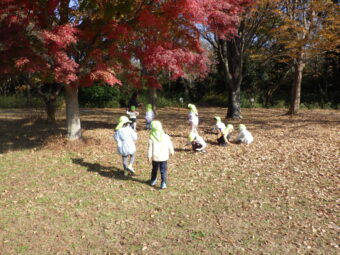 落ち葉の上を歩くと気持ちいいね。