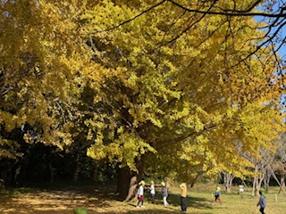 どんどん色ずくイチョウの木。